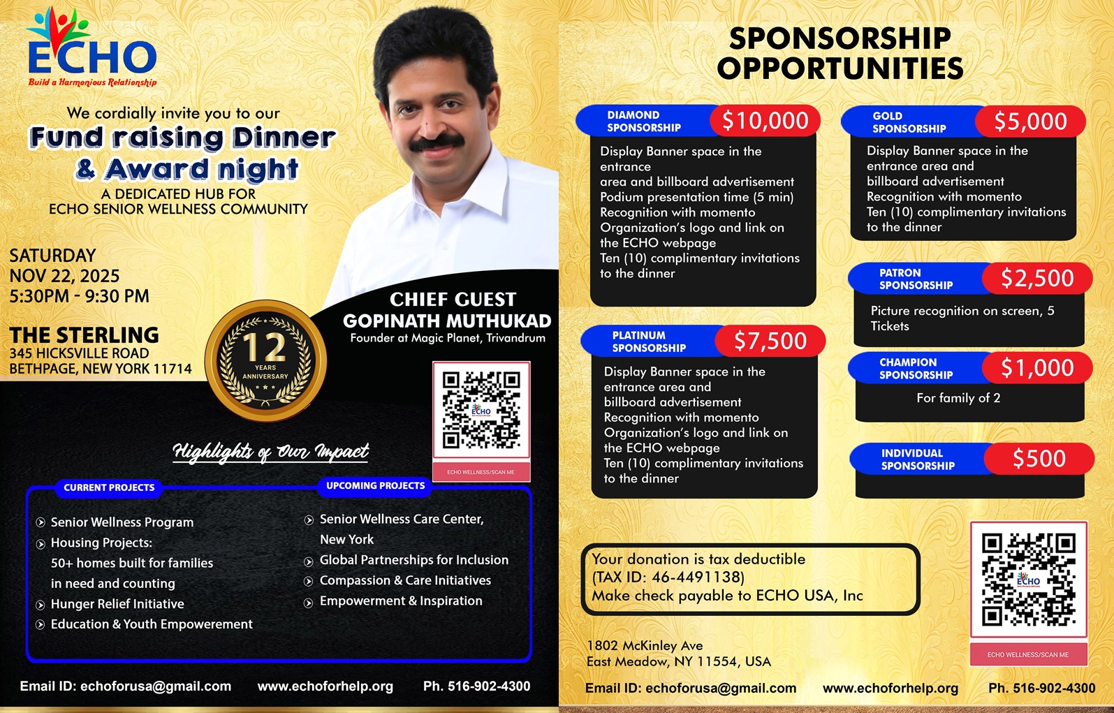 Fund Raising Dinner & Award Night Nov 22,2025 @ 5.30 PM.THE STERLING 345 HICKSVILLE ROAD BETHPAGE NEWYORK 11714.